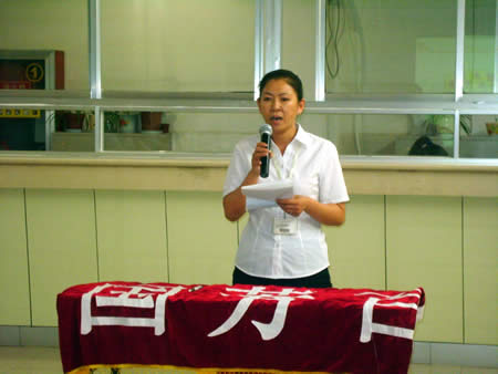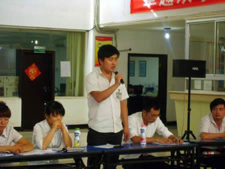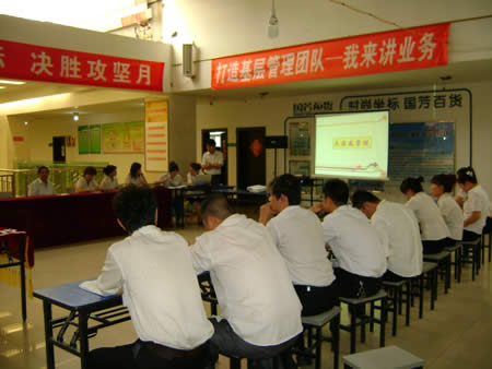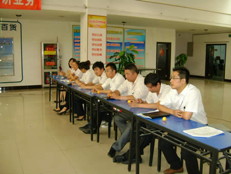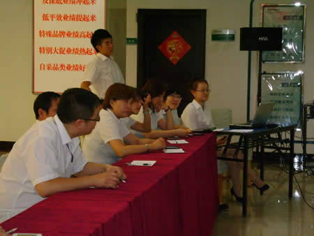 經(jīng)過兩番試卷考核之后,于2011年6月22日下午15:00時進行了第一場實操PK賽——我來講業(yè)務(wù)部分的競技。此次比賽均采用現(xiàn)場電腦隨機抽題,比賽人員現(xiàn)場準(zhǔn)備現(xiàn)場作答。業(yè)務(wù)展示題目涉及到賣場基層管理人員最核心、最基本的崗位知識、技能和職業(yè)素養(yǎng),如促銷管理、員工管理、VIP顧客管理、目標(biāo)責(zé)任管理等。