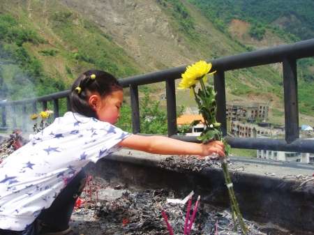 截至昨天下午6點(diǎn),近5萬(wàn)北川人,回到老縣城,通過(guò)放鞭炮,獻(xiàn)鮮花,燒紙錢(qián)等方式,祭奠長(zhǎng)眠于老縣城廢墟下的親人。