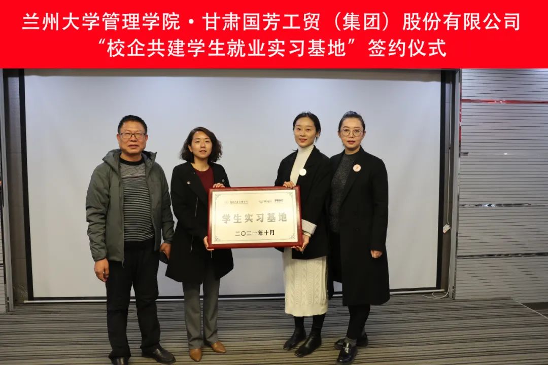 “校企合作,同道同行”,2021年10月15日上午,我司與蘭州大學(xué)管理學(xué)院舉行“校企共建學(xué)生就業(yè)實(shí)習(xí)基地”簽約儀式 ,在國芳寫字樓十五樓會(huì)議室舉行。國芳集團(tuán)總經(jīng)理張輝女士、國芳集團(tuán)總裁助理、人力資源總監(jiān)孟麗女士,蘭州大學(xué)管理學(xué)院黨委副書記李艷霞,蘭州大學(xué)管理學(xué)院團(tuán)委書記魯靜,蘭州大學(xué)管理學(xué)院教師代表王懷詩,蘭州大學(xué)管理學(xué)院校友秘書易芊汝,以及國芳集團(tuán)員工代表們出席了簽約授牌儀式。
