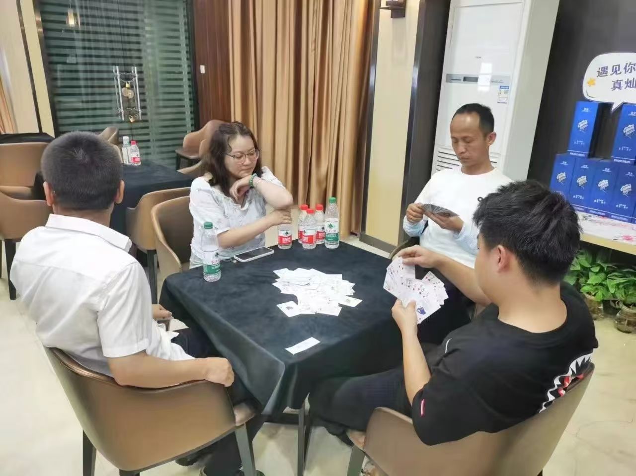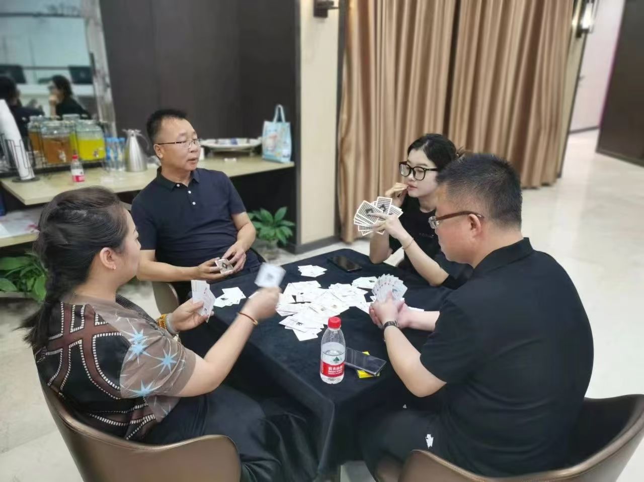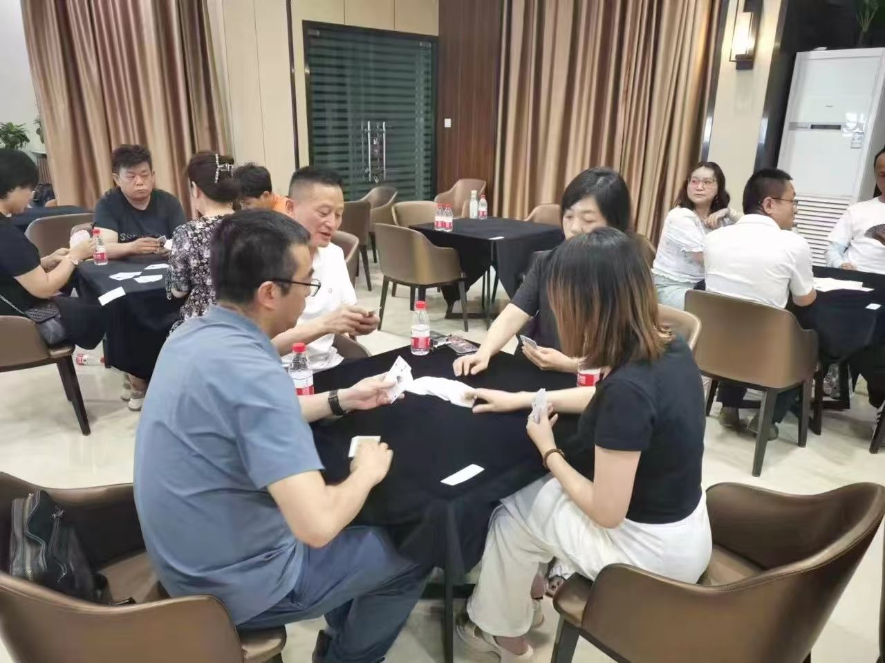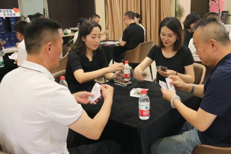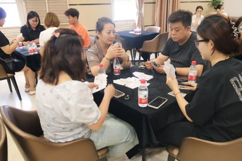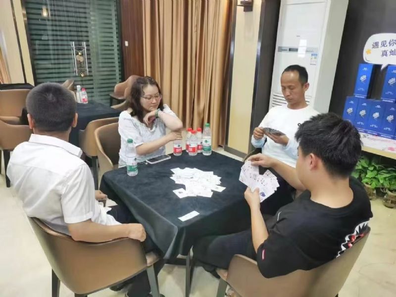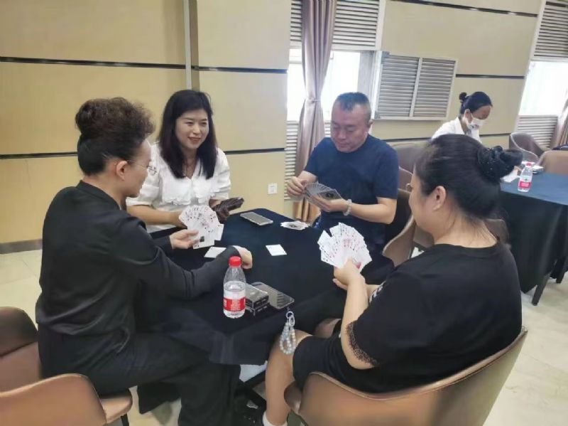 在運(yùn)動(dòng)會(huì)的摜蛋比賽現(xiàn)場,氣氛熱烈而又緊張。一張張牌桌整齊排列,參賽選手們兩兩相對(duì)而坐,神情專注而投入。他們的目光緊緊鎖住手中的牌,大腦飛速運(yùn)轉(zhuǎn),思考著出牌策略。每一次出牌都顯得深思熟慮,又充滿了果斷和自信。